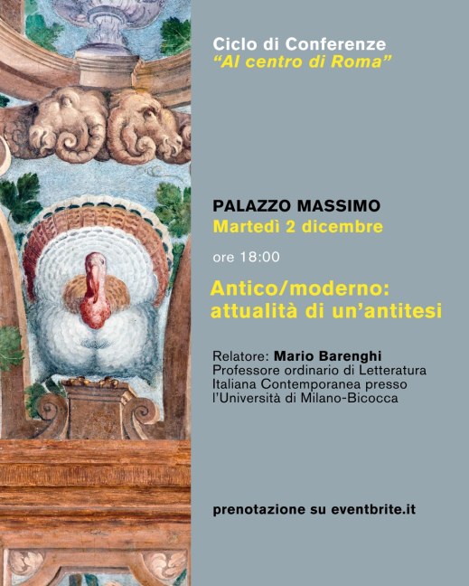 Tag:conferenza “Antico/moderno: attualità di un'antitesi”, Mario Barenghi, museo nazionale Romano, Palazzo Massimo, rassegna "Al centro di Roma", università di Milano-Bicocca
