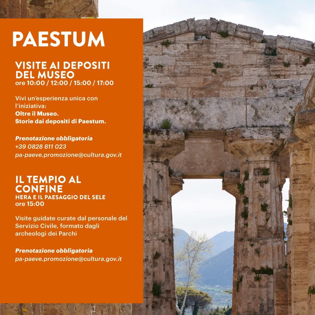 #domenicalmuseo ai parchi archeologici di Paestum e Velia: tante le iniziative in programma, dalle visite ai depositi al Santuario di Hera, dalla passeggiata lungo il Crinale degli Dei al tour virtuale
