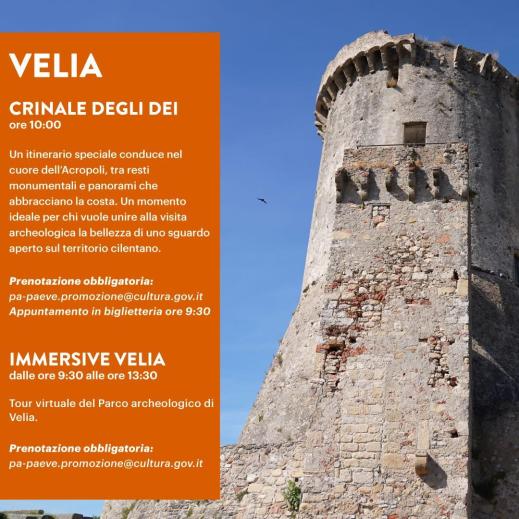 VELIA IMMERSIVE. Si potrà poi sperimentare con Immersive Velia, un tour virtuale che permette di esplorare il Parco Archeologico con visori Oculus Quest 3, ricostruzioni 3D e animazioni immersive, per camminare tra piazze, templi e spazi sacri dell’antica Elea. Il servizio è disponibile dalle 9.30 alle 13.30, con prenotazione obbligatoria: il numero di partecipanti è limitato a 10 persone all’ora. L’esperienza è inclusa nel biglietto di ingresso senza costi aggiuntivi.