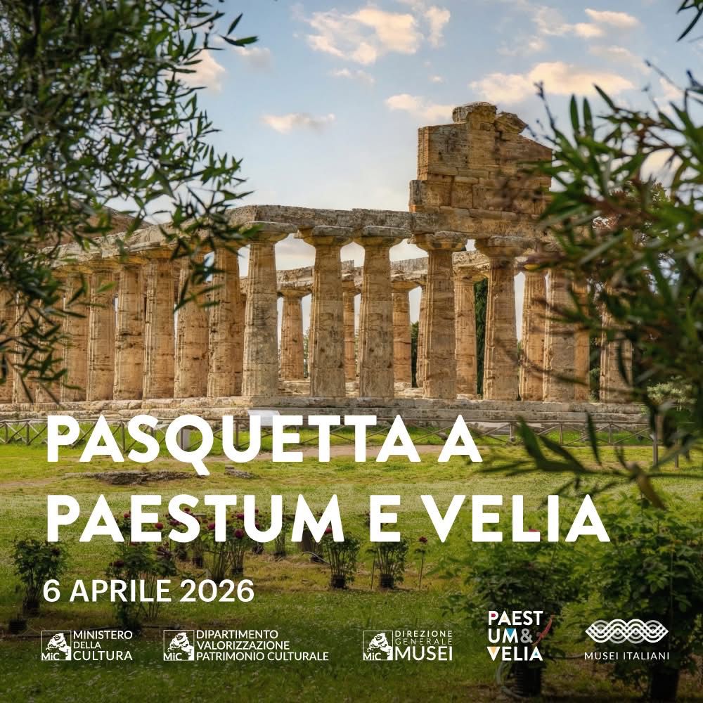 In occasione delle festività pasquali, i parchi archeologici di Paestum e Velia (Sa) sono regolarmente aperti, dalle 8.30 alle 19.30 con ultimo ingresso alle 18.30, offrendo a visitatori e famiglie l’opportunità di vivere queste giornate all’insegna della cultura, della bellezza e della storia. Il 5 aprile 2026, Domenica di Pasqua, coincide con la prima domenica del mese, con ingresso gratuito per tutti, grazie all’iniziativa promossa dal ministero della Cultura. Anche a Pasquetta, i Parchi resteranno aperti per accogliere il pubblico che desidera trascorrere una giornata diversa, tra arte, natura e relax. Un’occasione speciale per riscoprire due tra i siti archeologici più affascinanti del Mediterraneo, tra templi maestosi, paesaggi unici e percorsi immersi nella storia millenaria, con la possibilità di spostarsi tra Paestum e Velia grazie al servizio di navetta gratuita, attivo per entrambe le giornate di festa e pensato per favorire una mobilità sostenibile e una fruizione integrata dei due siti.