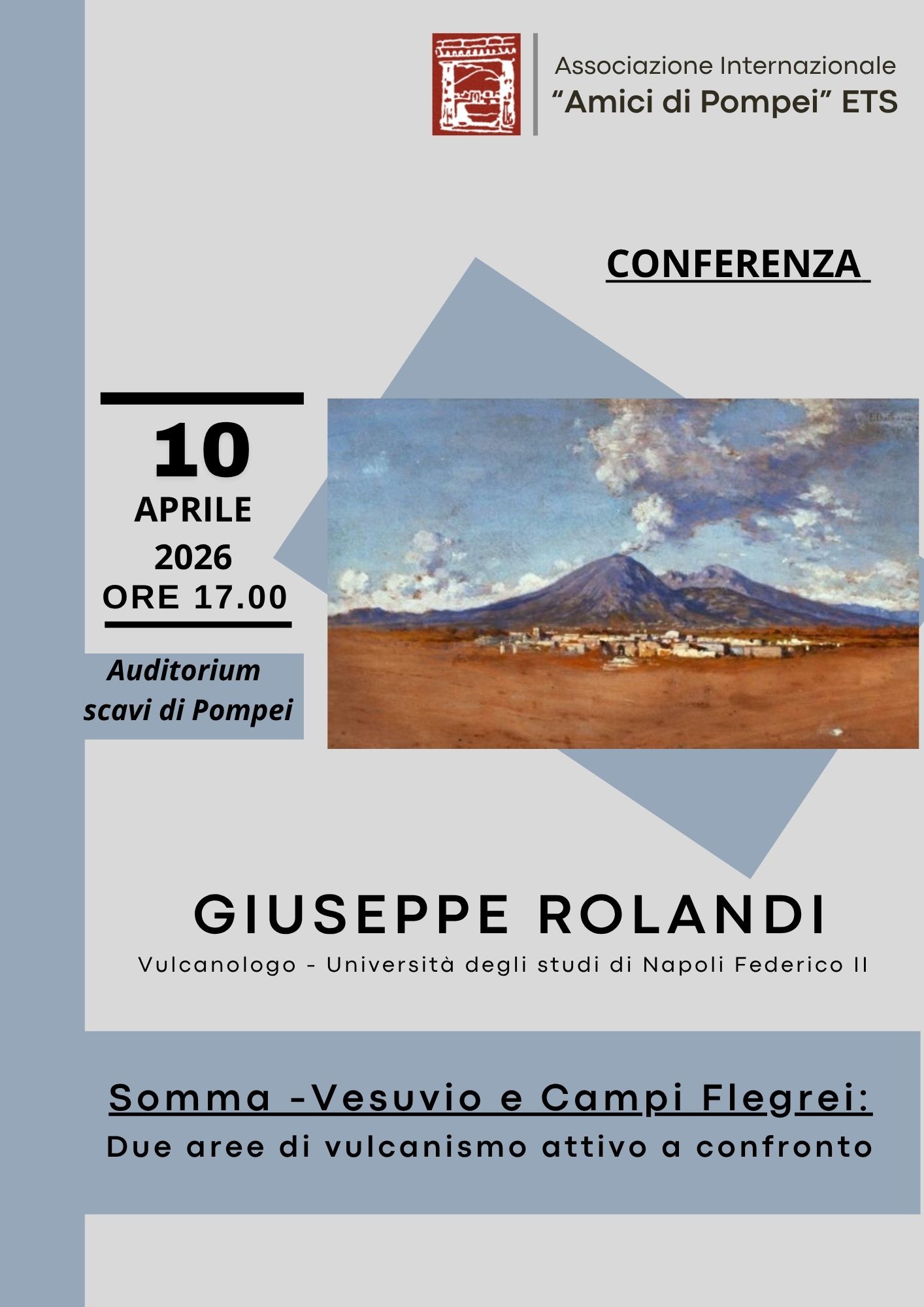 Venerdì 10 aprile 2026, alle 17, all’auditorium degli Scavi di Pompei, la conferenza “Somma-Vesuvio e Campi Flegrei: due aree di vulcanismo attivo a confronto” del professore Giuseppe Rolandi, già ordinario di Vulcanologia dell’università di Napoli Federico II, promossa dall’associazione internazionale Amici di Pompei ETS. La conferenza è incentrata sulla ricostruzione delle storie eruttive delle due aree di vulcanismo attivo campane, la cui evoluzione si è protratta fino ai giorni nostri, interagendo con le rispettive popolazioni esposte in una condizione di alto rischio vulcanico. L’iter evolutivo dei processi vulcanici ha mostrato una sostanziale diversità in queste due aree, con il Somma-Vesuvio a comportamento eruttivo da apparato centrale, ed i Campi Flegrei, il più famoso al mondo, con la struttura del campo vulcanico. Nel corso dell’intervento verrà mostrato come, pur in presenza di differenze sostanziali nell’iter delle due storie eruttive, si possono, per entrambe, modellare scenari futuri, fondamentali per la mitigazione del rischio, nella localizzazione, frequenza e tipologia del rischio vulcanico.