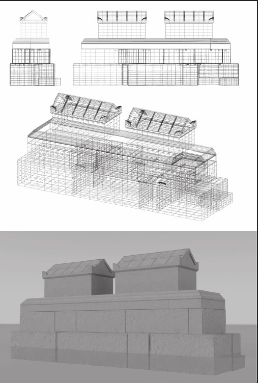 Una ricostruzione assonometrica e in 3D del monumento funerario di via San Pietro