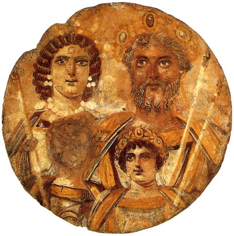 Il cosiddetto “tondo severiano” che raffigura la famiglia dell’imperatore Settimio Severo con il ritratto del figlio Geta cancellato