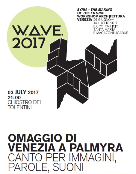 Omaggio di Venezia a Palmira. L’università Iuav di Venezia nell’ambito dei workshop estivi di architettura Wave 2017 “Syria the making of the future”, lunedì 3 luglio 2017, alle 21, al giardino dei Tolentini, presenta lo spettacolo “Omaggio di Venezia a Palmyra تدمر Canto per immagini, parole, suoni”: azione teatrale, video testi musiche con Stefano Scandaletti, musica dal vivo di Domenico Calabrò, a cura di Monica Centanni e Marco Bertozzi, ricerche e montaggio video Caterina Shanta, collaborazione testi e drammaturgia Daniela Sacco. Un evento promosso in cui immagini, parole e suoni si intrecciano a evocare una storia che ha al centro la mitica città: un racconto sulla capitale “invisibile” di una civiltà mediterranea che sfonda i confini incerti di Oriente e Occidente, che ha come protagonista un uomo, Khaled Al Assad, assassinato per aver cercato di difendere le pietre della “sua” – della nostra – Palmyra. “Non c’è cosa nella vita pari al mio amore per Palmira”, diceva Khaled al Asaad. “Su questa terra ho vissuto, in questa culla ho dedicato tutti i miei sforzi per quarantacinque anni agli scavi, ai restauri, alla pubblicazione della sua storia […]. Sono nato vicino al Tempio di Bel – il santuario principale dedicato al dio locale (distrutto dai miliziani dell’Isis, ndr). Ho passato tutta la mia vita qui; sarebbe ridicolo e vile lasciare la città in questo momento”. Lo spettacolo propone un montaggio video (materiali storici e filmati inediti), con incastonati brani di musica dal vivo e lettura teatrale di testi storici e letterari; un racconto articolato per capitoli: La via di Palmyra; Zenobia, la regina: Palmyra modello di città. Uomini e pietre; Teatro di guerra: la bellezza che non salva; Senza dio; La città invisibile (con testi di Khaled Al Asaad, Cesare Brandi, Historia Augusta, Marguerite Yourcenar, Christine de Pizan, Boccaccio, Plinio, Leon Battista Alberti, Jacques Prevert, Ezra Pound, Italo Calvino).