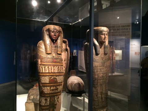 Il cuore della mostra è la figura del faraone Amenofi II con la ricostruzione in scala 1:1 della sala a pilastri della sua tomba: guarda il video. Un’esperienza immersiva che accompagna il pubblico invitandolo a entrare, attraverso un focus sulle credenze funerarie e la mummificazione, nella camera funeraria per ammirare i tesori che accompagnavano il faraone nel suo viaggio verso l’Aldilà, come ad esempio la stupenda barca sacra, in legno dipinto, proveniente dalla anticamera della Tomba di Amenofi II e conservata al museo Egizio del Cairo. “La struttura della tomba è complessa e le sue dimensioni imponenti”, spiegano gli egittologi. “Una doppia successione di scala e corridoio conduce alla sala del pozzo che sbocca nel vestibolo a due pilastri. Dal vestibolo una terza scala e un terzo corridoio portano a una grande sala rettangolare sostenuta da sei pilastri (sui quali era raffigurato il re al cospetto di diverse divinità), che si prolunga a Sud, al di là dell’ultima coppia di pilastri, nella camera sepolcrale con il sarcofago. Le pareti della stanza a sei pilastri sono decorate con i testi completi del Libro dell’Amduat e con le illustrazioni corrispondenti, come se si trattasse di un grande papiro murale”. L’archeologo Loret portò alla luce non solo la mummia del faraone, ma anche quelle di alcuni celebri sovrani del Nuovo Regno, tra cui Thutmosi IV, Amenofi III, Sethi II, Ramses IV, Ramses V e Ramses VI, mummie che erano state nascoste all’interno di una delle quattro stanze annesse alla camera funeraria, con lo scopo di sottrarle alle offese dei profanatori di tombe. Tra gli altri corpi ritrovati da Loret nella tomba, anche quelli della madre e della nonna di Tutankhamon.