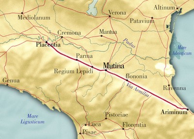 “Nel sentire comune degli antichi romani”, spiegano i curatori, “la costruzione di un ponte ricadeva prima di tutto nella sfera del sacro: non a caso uno dei principali collegi sacerdotali di Roma era quello dei pontefici, cioè costruttori di ponti. E i romani erano in grado di costruire arditi ponti in murature ad arcate poggianti su pilastri grazie alla perizia dei propri ingegneri e alla scoperta dell’opus coementicium, una malta idraulica che permetteva di realizzare opere murarie di sostegno a diretto contatto con l’acqua”. Lungo la via Emilia famoso è il cosiddetto ponte di Tiberio a Rimini, realizzato in soli sette anni tra il 14 e il 21 d.C. Non meno peculiari in un tracciato stradale erano le sepolture. “Il cimitero romano non era infatti un recinto, come ai giorni nostri”, ricordano gli archeologi, “ma, in ossequio al divieto imposto dalle leggi delle XII tavole di seppellire i morti all’interno dei confini urbani, si articolava in allineamenti, quasi cortine, di tombe lungo le strade di accesso alle città”. Così era abbastanza frequente l’esortazione “Viandante, fermati a leggere”, rivolta ai passanti, che percorrevano una strada alle porte della città romana, dalle lapidi che ne accompagnavano il percorso. “Percorrendo queste vie sepolcrali il viandante poteva rivivere le esistenze di cittadini più o meno illustri attraverso le parole incise nella pietra dei monumenti funerari, così come essi stessi si erano presentati con evidenti intenti propagandistici”. La via Emilia, alle porte di Regium Lepidi, ospitò sepolture sia in direzione di Parma, sia di Mutina, dove era allestita la necropoli più monumentale perché imperniata sulla strada la cui proiezione raggiungeva Roma.