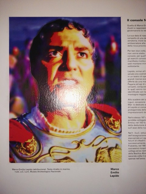 A Est sorge Ariminum (l’odierna Rimini), fondata dai romani nel 268 a.C. sul fiume Marecchia (Ariminus), dove dal 220 a.C. terminava la via Flaminia, il collegamento più veloce da Roma per l’alto Adriatico. A Ovest, troviamo Placentia (l’odierna Piacenza), fondata nel 218 a.C., prima colonia romana in Italia settentrionale (Gallia Cisalpina) come importante avamposto militare contro la minaccia incombente di Annibale. E solo poco più di mezzo secolo più tardi, nel 148 a.C., avrebbe incrociato la via Postumia (da Genova ad Aquileia). A collegare le due colonie di Ariminum e Placentia, un lungo rettifilo di 262 chilometri, la via Emilia, fondata dal console Marco Emilio Lepido nel 187 a.C., toccando Caesena (Cesena), Forum Popilii (Forlimpopoli), Forum Livii (Forlì), Forum Cornelii (Imola), Claterna, Bononia (Bologna), Mutina (Modena), Regium Lepidi (Reggio Emilia), Tannetum (Sant’Ilario d’Enza), Parma, Fidentia (Fidenza). Sono passati 2200 anni dalla fondazione della via Emilia, celebrati con grandi mostre. Come quella che stiamo seguendo a Reggio Emilia. Ora, dopo aver avuto un’informazione generale sui reperti esposti, aver conosciuto il territorio della Gallia Cisalpina prima dell’arrivo dei romani, e aver visto alcuni elementi caratteristici di una via consolare, come i miliari, i mezzi di trasporto, e gli agrimensori, il percorso della mostra “On the road – Via Emilia 187 a.C. – 2017”, aperta fino al 1° luglio 2018 al Palazzo dei Musei di Reggio Emilia, al piano terzo, nella cosiddetta Manica Lunga, sala centrale di 50 metri, immerge il visitatore nella Via Emilia/SS9, un viaggio nello spazio e nel tempo, da Piacenza a Rimini e oltre, che si propone di presentare l’ieri e l’oggi della Via Emilia: Marco Emilio Lepido e la sua città, Racconti per l’eternità (archeologia e sepolcri), La buona strada (tecniche costruttive) e Ruote, zoccoli, calzari (mezzi e dotazioni per il viaggio e il cammino).