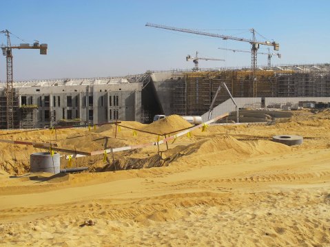 L’impressionante cantiere del Grand Egyptian Museum a Giza (foto Maurizio Zulian)