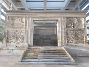 La mostra “Pax Romana. Omaggio dal Museo Archeologico Nazionale di Napoli”, aperta fino all’8 luglio 2018, alla galleria civica di Arte medievale, moderna e contemporanea “Vittorio Emanuele II” a Vittorio Veneto, con il supporto di Marialucia Giacco, funzionario archeologo del Mann, presenta dunque quattro opere altamente evocative di quella che Seneca definì la Pax romana, ovvero quel periodo durato ben due secoli, di concordia, sviluppo e pace, reso possibile dalla politica di Augusto. La Pax Augustea era intesa, innanzitutto, come securitas che viene a coincidere con la fine delle guerre civili: un senso di sicurezza generalizzato e la certezza del diritto al benessere e alla prosperità economica. Era l’avvio della cosiddetta Età dell’oro (Aurea Aetas), emblematicamente rappresentata dal monumento simbolo dell’età augustea, l’Ara Pacis Augustae, i cui motivi decorativi si diffonderanno rapidamente ben oltre Roma, anche come segno di adesione e omaggio nei confronti del princeps e del nuovo regime politico da lui instaurato.