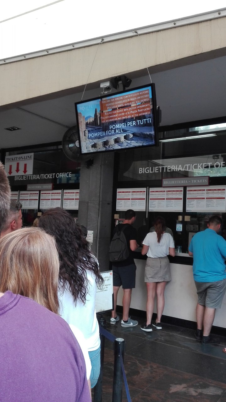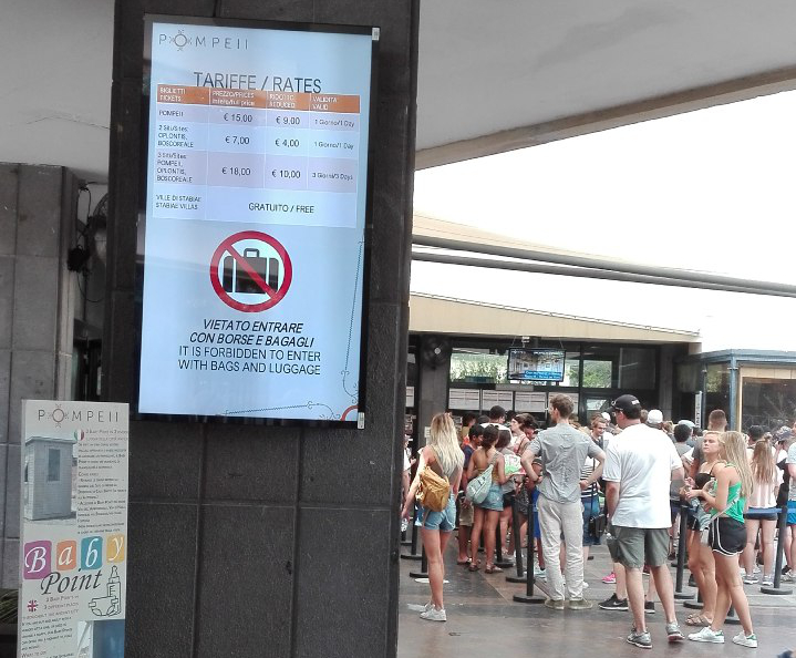 Uno dei grandi monitor che i visitatori possono consultare in corrispondenza delle biglietterie di Pompei