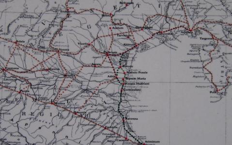 Mappa delle strade romane nel Nord Italia: il tracciato della via Emilia Altinate andava da Bononia ad Aquileia