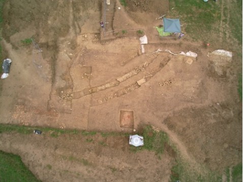 Il settore Nord della domus del Fabbro a Claterna con i nuovi ambienti scavati in profondità (foto da drone di Paolo Nanni)