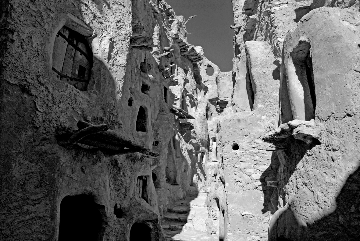 Il viaggio di Lucio Rosa termina a Gsar Gharyan “il castello delle grotte” nella lingua dei berberi, a 600 metri di quota, che rispecchia uno degli usi più comuni delle tribù berbere che abitavano nell’altopiano di Nafusah. “Sappiamo che erano una popolazione troglodita che abitava in case scavate interamente nel terreno alla profondità dagli 8 ai 10 metri”, spiega Rosa. “All’interno delle case sotterranee si beneficia di una temperatura confortevole durante tutto l’anno, protetti dal caldo feroce dell’estate e dal freddo pungente dell’inverno. L’abitazione vera e propria si presenta con una serie di stanze idonee per vivere una vita confortevole. Naturalmente, pure nella semplicità delle case, non mancavano locali adibiti a magazzini”. Queste abitazioni oggi non vengono più usate per viverci, ma volentieri vi si accolgono gli amici e si aprono a qualche viaggiatore curioso di conoscere e desideroso di cogliere, con animo affascinato, nuove esperienze, nuove amicizie. “Questo mondo sta lentamente dissolvendosi nel nulla, stretto d’assedio dalla sabbia ed dall’oblio. Rimane la speranza, un desiderio, forse inconscio, che tutto ciò possa un giorno risvegliarsi, la sabbia svanire, l’uomo ritornare”. Rimane l’attesa di un ospite, un “viaggiatore” giunto da terre lontane richiamato dal misterioso fascino di queste antiche vestigia, create, un tempo, dagli Imazighen, “uomini liberi”. Queste terre berbere attendono il ritorno del “Ragazzo con la Nikon”.