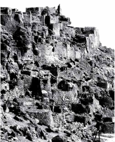 Anche dell’antico villaggio, della bella e ricca vecchia oasi berbera di Derdj, non rimangono che poche rovine. Mura crollate, passaggi ostruiti dalle macerie e la sabbia che si riprende la città, lentamente ma inesorabilmente. Silenziosa, dimenticata, Derdj ha vissuto, come altre oasi del Jabel Nafusha, l’esodo dei suoi abitanti. Un labirinto di viottoli si insinua tra case diroccate, ma pure nella distruzione quasi totale qualche cosa emerge dalle rovine. Si possono scorgere le tracce di quelle che furono sontuose dimore, veri palazzi, un segno di prosperità e di ricchezza che antichi mercanti donarono a questa città oasiana. Una imponente fortezza, arroccata sul bordo della falesia, sovrasta il vecchio villaggio. Posta a guardia della frontiera sia meridionale che occidentale, testimonia l’importanza di questo insediamento che permetteva la vigilanza sul territorio e la gestione del traffico delle merci tra l’Africa nera e le coste del Mediterraneo.