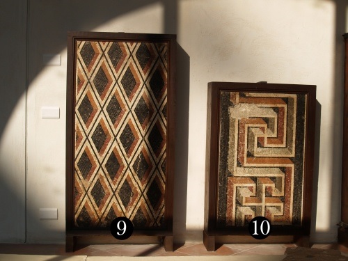 Due esempi di mosaici esposti nella corte di Palazzo Mazzolani, da domus scoperta in Faenza nel 1899