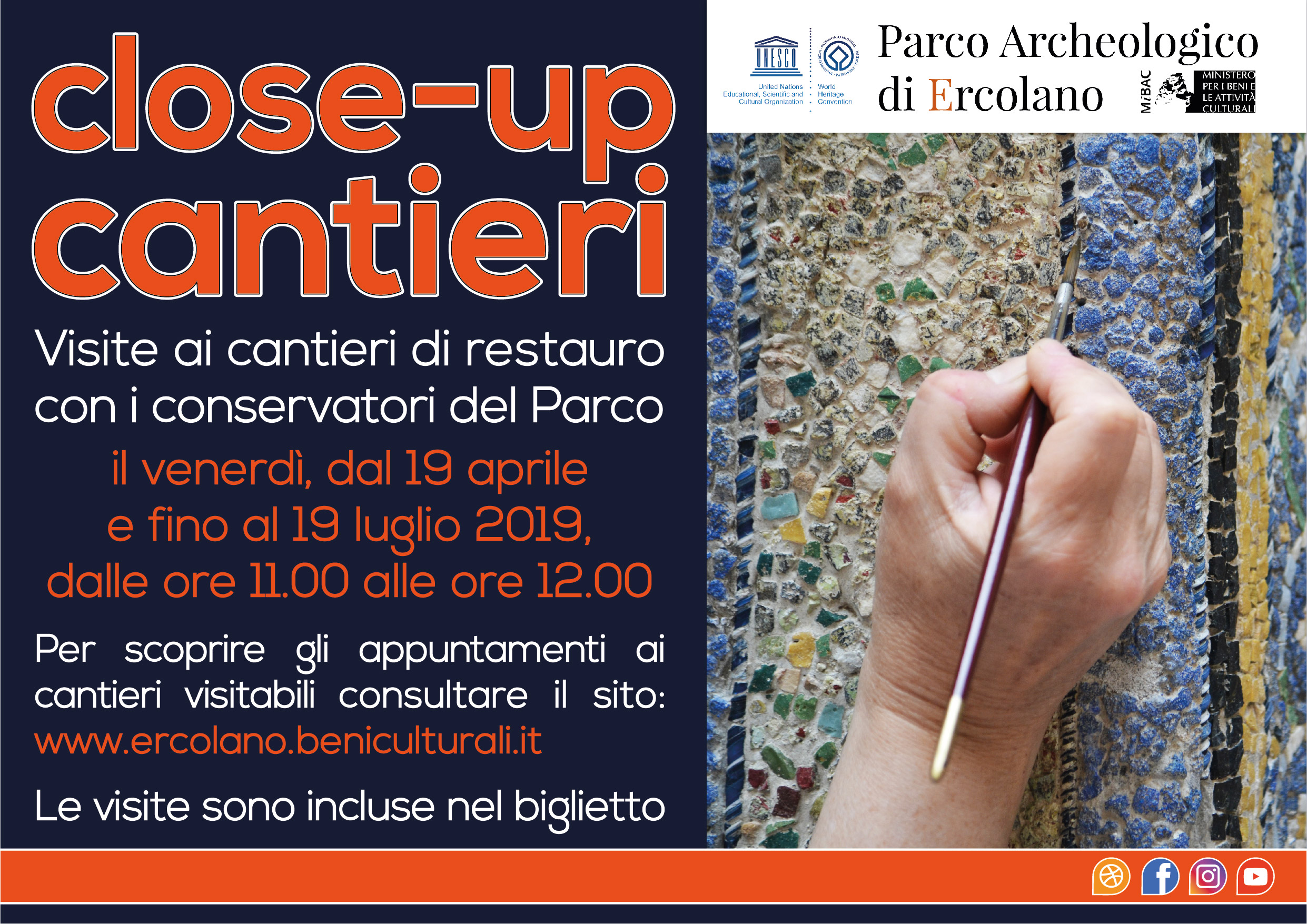 Con aprile a Ercolano il venerdì è il giorno “Close-up Restauri Porte Aperte”: a partire dal 19 aprile 2019 e fino al 19 luglio 2019, ogni venerdì mattina, dalle 11 alle ore 12, i visitatori del Parco archeologico di Ercolano potranno accedere ai cantieri di restauro in corso nell’area archeologica nell’ambito delle campagne di manutenzione sia programmata che straordinaria, e parlare con i conservatori per scoprire il loro lavoro. “L’apertura al pubblico dei cantieri di Manutenzione Programmata”, dichiara il direttore Francesco Sirano, “corrisponde a una gestione partecipativa dei processi che vede da una parte anche la richiesta del nostro pubblico, sempre più appassionato e interessato, dall’altra il dovere di essere accessibili e trasparenti anche nella nostra pratica quotidiana in modo tale da rendere per tutti Ercolano laboratorio aperto. Il tutto avviene in coerenza con quanto voluto già dal grande studioso e soprintendente Amedeo Maiuri di rendere vivo un luogo in apparenza non vivo ma che invece ha tanto da trasmettere e tramandare attraverso una modalità di fruizione aperta”. Si tratta di un servizio offerto dal Parco senza alcun costo aggiuntivo per essendo già compreso all’interno del biglietto di ingresso al sito.