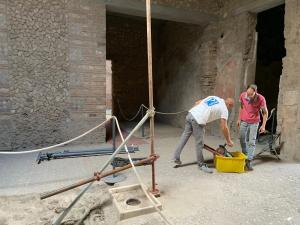 Il pronto intervento per la messa in sicurezza della Casa della Fontana Piccola a Pompei (foto parco archeologico Pompei)