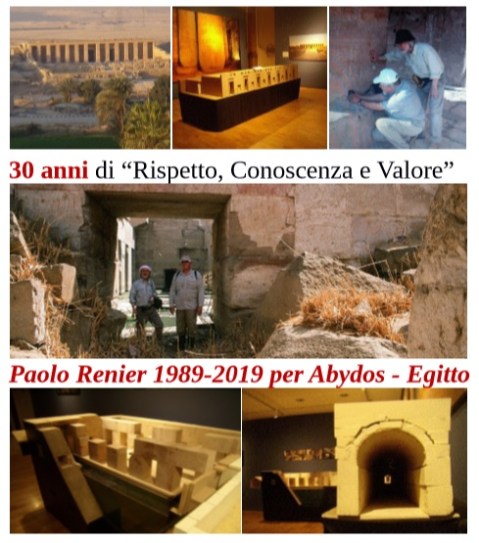 Il Progetto Abydos e le mostre. Ormai Paolo Renier e il suo Progetto Abydos per la conoscenza e la valorizzazione del sito sono una realtà. È il momento di allargare la platea. Vengono così organizzate alcune mostre che allargano le conoscenze e le collaborazioni. Si inizia nel 2006 con “Abydos, Egitto. Ricostruzione scenografica del sito di Abydos” nella prestigiosa cripta della basilica di San Lorenzo a Firenze, con il contributo di Maria Cristina Guidotti direttrice del museo Egizio di Firenze. L’anno successivo la stessa mostra viene proposta al Palazzo del Turismo al Lido di Jesolo (Ve), e nel 2008 passa nell’aula magna dell’istituto scolastico di Tarzo (Tv). Nel 2009 Renier torna a Firenze con “Il tempio di Osiride svelato. L’Antico Egitto nell’Osireion di Abydos”. Stavolta siamo nel cuore archeologico di Firenze. La mostra infatti viene ospitata nella sezione Egizia del museo Archeologico nazionale di Firenze, dove, con la direttrice Maria Cristina Guidotti, viene proposto un percorso di documenti fotografici e gigantografie insieme a splendidi reperti egizi del museo fiorentino.