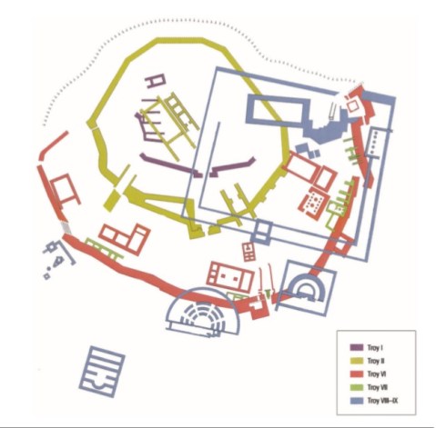 Ma quella individuata da Schliemann non era la Troia omerica o almeno non solo. Dietro il mito di Troia c’è una città che conosce una vita lunghissima, tra l’Antica età del Bronzo e il periodo bizantino (dal 3000 a.C. alla fine del 1200 d.C. circa) scandita dagli studiosi in dieci periodi (I-X). Molte delle fasi edilizie di Troia mostrano segni di incendi, distruzioni e terremoti. Secondo diversi ipotesi, la città descritta da Omero coinciderebbe con il periodo VI finale, oppure VII iniziale (circa 1300-1200 a.C.). In questi livelli gli scavi hanno messo in luce una cittadella di circa 2 ettari, circondata da mura possenti, e una “città bassa” estesa per almeno altri 27 ettari. Se il mito riconduce la guerra di Troia al rapimento di una donna, gli attacchi militari che la città ha subito suggeriscono la sua importanza strategica nello scacchiere geopolitico del mondo antico. Troia sorgeva infatti a controllo dello stretto dei Dardanelli, punto di passaggio obbligato tra Europa e Asia, e via d’accesso al mar Nero (un ruolo che secoli più tardi sarà ereditato da Costantinopoli, l’odierna Istanbul).