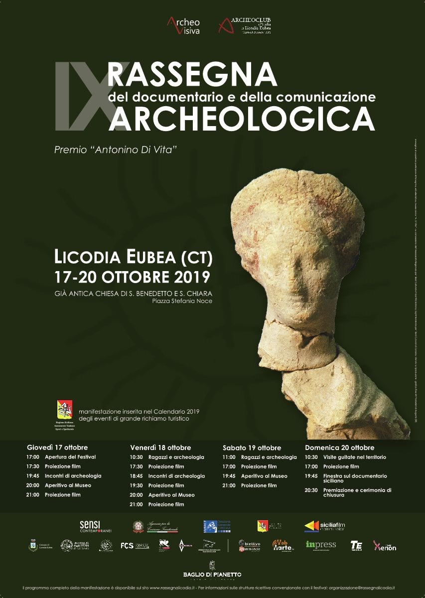 Diciotto le opere in concorso, tra documentari, docu-fiction e film di animazione, di cui 7 straniere; 4 anteprime nazionali, oltre 13 ore di proiezioni e un ricco calendario di eventi collaterali. Sono i numeri (grandi numeri!) della IX edizione della prestigiosa Rassegna del Documentario e della Comunicazione Archeologica di Licodia Eubea (Ct), uno dei più importanti festival cinematografici italiani (l’unico nel Sud Italia) dedicato alla divulgazione dell’Antico attraverso le arti visive. L’appuntamento dal 17 al 20 ottobre 2019 negli spazi polifunzionali dell’ex chiesa di San Benedetto e Santa Chiara per la IX Rassegna promossa dall’associazione culturale ArcheoVisiva in collaborazione con l’Archeoclub d’Italia di Licodia Eubea “M. Di Benedetto” e con il sostegno della Sicilia Film Commission (programma Sensi Contemporanei).