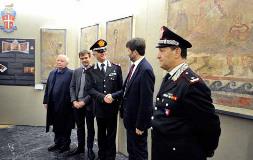 Il ministro Dario Franceschini con il comando del nucleo tutela patrimonio culturale dei carabinieri