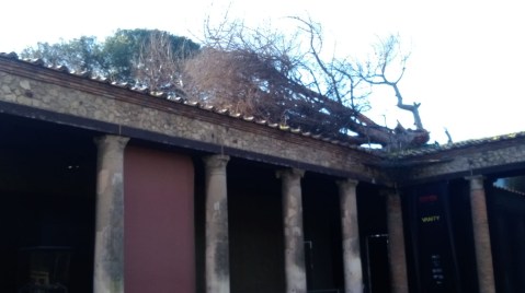 Pompei. Bufera di Santa Lucia: cade un pino sulla Palestra Grande e vola cupolino di copertura dell’Antiquarium. Nessun danno all’area archeologica. Osanna: “Grande prova di efficienza di tutto lo staff”