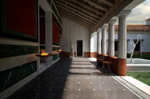 Ricostruzione 3D del porticato del giardino della domus di Tito Macro (I sec d.C.) (foto fondazione Aquileia)