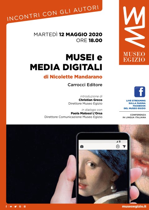 La locandina della presentazione in streaming del volume “Musei e media digitali” di Nicolette Mandarano