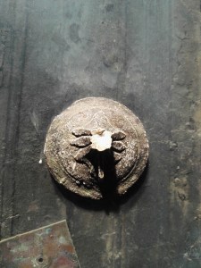 Il portalampade sulla porta in legno della Casa del Tramezzo a Ercolano (foto Graziano Tavan)