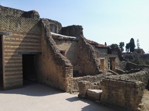 Il cortile con la decorazione a giardino nella Casa dello Scheletro a Ercolano (foto Graziano Tavan)