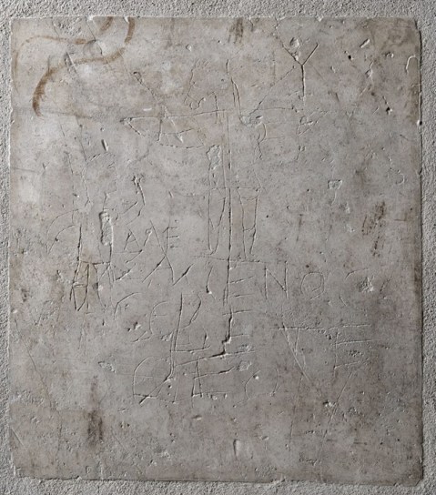 Il cosiddetto “graffito blasfemo” trovato nel Paedagogium e conservato nel museo Palatino (foto PArCo)