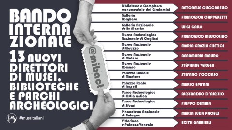 Tredici musei, parchi archeologici e biblioteche hanno un nuovo direttore. Per il parco archeologico di Pompei, il cui direttore Massimo Osanna dal 1° settembre 2020 è diventato direttore della Direzione generale dei Musei, ci sarà un apposito bando internazionale che porterà a una nomina appropriata per la prossima primavera: lo ha assicurato il ministro per i beni e le attività culturali e per il turismo, Dario Franceschini, nell’annunciare i 13 nuovi direttori di musei, parchi archeologici e biblioteche selezionati da una commissione di altissimo livello scientifico presieduta dal direttore del museo Egizio di Torino e composta dai direttori della National Gallery di Londra, del Prado di Madrid e da esperti di chiara fama. “I musei italiani sono cambiati profondamente in questi anni – ha commentato – fino a diventare un’eccellenza, un modello positivo e riconosciuto nel mondo perché a guidarli sono andate le persone giuste attraverso rigorose selezioni internazionali”. La commissione ha valutato 425 candidati e selezionato i direttori dei tredici istituti culturali statali dotati di autonomia messi a bando con la procedura di selezione internazionale dello scorso gennaio. “Tredici importanti realtà del patrimonio culturale italiano – ha aggiunto Franceschini – hanno ora un direttore selezionato tra i massimi esperti internazionali, grazie all’accurato e scrupoloso lavoro di valutazione effettuato da una commissione di alto livello scientifico che ringrazio pubblicamente per il grande lavoro svolto in questi mesi. Un metodo innovativo che sta contribuendo con successo alla modernizzazione del sistema museale nazionale”. Secondo la procedura, il ministro Franceschini ha scelto i direttori dei 3 musei di I fascia (Galleria Borghese, Museo Nazionale Romano, Vittoriano e Palazzo Venezia) tra le terne di candidati individuati dalla Commissione per ogni singolo istituto; il Direttore Generale Musei, Massimo Osanna, ha scelto i direttori dei 9 musei di II fascia (Galleria nazionale delle Marche, Museo archeologico nazionale di Cagliari, Museo nazionale d’Abruzzo, Museo nazionale di Matera, Palazzo Dicale di Mantova, Palazzo Reale di Napoli, Parco Archeologico di Ostia antica, Parco archeologico di Sibari, Pinacoteca Nazionale di Bologna) tra le terne di candidati individuati dalla Commissione; la Direttrice Generale Biblioteche, Paola Passarelli, ha scelto il direttore della Biblioteca e Complesso monumentale dei Girolamini tra i nomi della terna indicata dalla Commissione. Vediamo da vicino i nuovi direttori di musei e parchi archeologici.