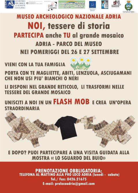 Giornate europee del Patrimonio: il museo Archeologico nazionale di Adria promuove una maratona on-line e un flash-mob di Land Art con la realizzazione di un grande mosaico romano in bianco e nero con tutto quello che verrà portato da casa. Visite guidate gratuite alla mostra “Lo sguardo del buio”