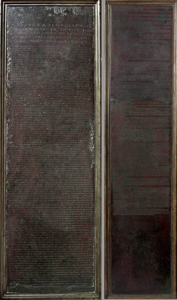 Le due lastre di bronzo costituiscono il più importante documento iscritto della Magna Grecia. Incise sui due lati, in greco e in latino, permettono di ricostruire le trasformazioni della città di Herakleia dalla sua fondazione da parte di Taranto alla fine del V secolo a.C. fino all’acquisizione dello statuto di municipio romano, attribuito alla città, ormai Eraclea, nella prima metà del I a.C. L’iscrizione greca è un regolamento per la gestione dei terreni dedicati a Dioniso e ad Atena e per la loro redistribuzione a scopi produttivi; quella latina è un compendio di leggi municipali di età tardo-repubblicana. Le Tavole sono un documento fondamentale per comprendere la storia sociale, politica e economica del territorio della Siritide.