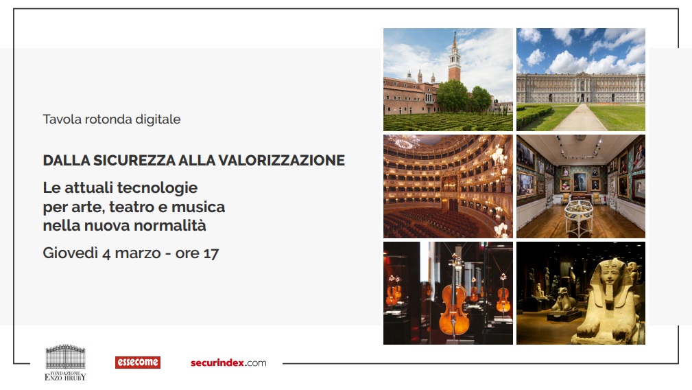 Cosa può fare il settore della sicurezza per aiutare i responsabili della conservazione delle opere d’arte e dei luoghi dello spettacolo dal vivo a dare le risposte che il loro pubblico si aspetta e si aspetterà per lungo tempo? Quali sono le tecnologie più adatte per passare dal problema all’opportunità? E quali sono i maggiori nodi da sciogliere in una fase così delicata come quella che stiamo vivendo? Intorno a questi temi è incentrata la tavola rotonda digitale che si svolgerà giovedì 4 marzo 2021, alle 17, “Dalla sicurezza alla valorizzazione – Le attuali tecnologie per arte teatro e musica nella nuova normalità”, ideata dalla Fondazione Enzo Hruby di Milano – da anni impegnata per sostenere la protezione del patrimonio culturale italiano – e da essecome-securindex, testate di riferimento nel settore della sicurezza fisica. Intervengono Renata Codello, segretario generale della Fondazione Giorgio Cini; Andrea Erri, direttore generale del Teatro La Fenice di Venezia; Carlo Hruby, vice presidente della Fondazione Enzo Hruby; Tiziana Maffei, direttore della Reggia di Caserta; Andrea Mascetti di Fondazione Cariplo. Modera l’incontro Raffaello Juvara, editore e direttore di essecome-securindex. La partecipazione è libera previa registrazione al seguente link. La sicurezza dei beni culturali consiste da sempre nella ricerca di soluzioni per la loro protezione contro furti, sottrazioni, atti di vandalismo, danneggiamenti: per conservare, difendere e tramandare alle generazioni future un patrimonio straordinario. La pandemia globale ha creato una nuova esigenza, ovvero quella di rendere sicuri i luoghi della cultura anche dal punto di vista sanitario. I responsabili dei musei e dei luoghi dello spettacolo si trovano oggi di fronte a questo nuovo paradigma e anche alla possibilità, finora poco esplorata, di cogliere le importanti opportunità che le attuali tecnologie possono offrire non solo in termini di protezione ma anche di valorizzazione, consentendo ad esempio di ottimizzare l’offerta al pubblico dei tesori conservati e di gestire al meglio i flussi delle persone per migliorare l’esperienza di visita.