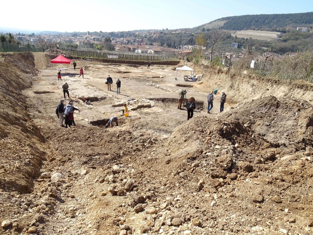 “L’obiettivo è quello di raccogliere disponibilità e risorse da parte di tutti gli attori in campo”, ha spiegato il soprintendente Vincenzo Tinè. “In questo momento siamo nella fase della ricerca e dello scavo che, trattandosi di attività notoriamente riservate al ministero siamo autonomi, possiamo intervenire, possiamo godere di contributi, disponibilità di privati e di enti pubblici. Un po’ più complicata sarà l’organizzazione della fase valorizzazione con queste stesse modalità che ci auguriamo di sinergia pubblico-privato. Dopo lo scavo estensivo che contiamo di completare nella primavera del 2022, dovrà essere scattata – col contributo che ci aspettiamo dal ministero – la fase di parco e di allestimento delle strutture. Con qualche difficoltà rappresentata dal fatto che lo Stato dovrà investire importanti fondi su un’area privata. Ma l’interesse è proprio quello di riuscirci senza snaturare questa modalità sinergica e di collaborazione che non tende a espropriare, non tende a mettere nella mano pubblica per forza tutto, ma lasciare ai privati non solo la proprietà ma anche qualche forma di gestione del sito perché l’interesse qui è mettere insieme archeologia – come dice il sindaco – e il prodotto caratteristico della Valpolicella, cioè il vino. Che è un elemento culturale: vorrei ricordare che anche su questo filone la soprintendenza lavora con il settore demo-etno-antropologico (tra l’altro in Valpolicella abbiamo un luminare in questione che è il prof. Vincenzo Padiglione ordinario a Roma). E quindi sono filoni interconnessi anche solo dal punto di vista culturale. Il vino vale quanto l’archeologia, e viceversa”.