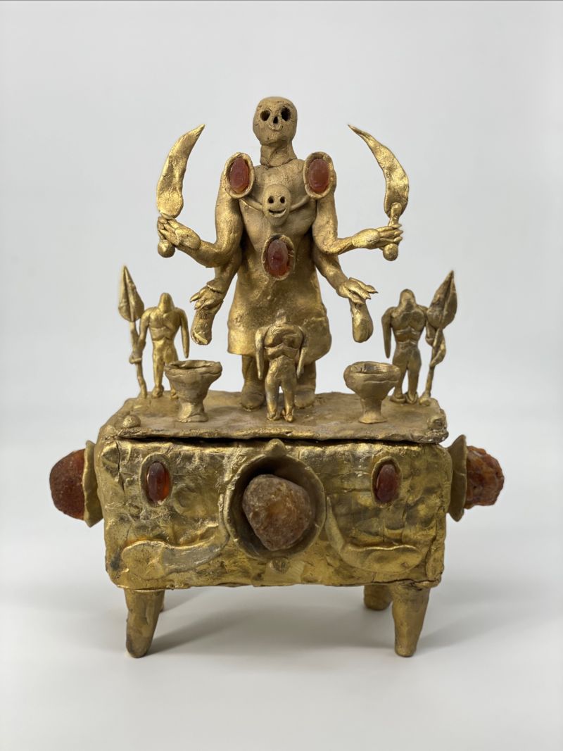 È un lungo romanzo a capitoli il rapporto di Evgeny Antufiev con il patrimonio archeologico sedimentato nel nostro territorio e presente nei nostri musei. Una fascinazione che Antufiev subisce per la stratificazione segnica e simbolica, per l’eco profondo di antiche storie che continuano a parlarci nelle sale dei musei. Quale migliore sintonia per un artista che da sempre esplora l’idea dell’immortalità e della rigenerazione attraverso archetipi che hanno accompagnato l’esistenza e l’immaginazione umana in una storia senza fine? La risposta nella mostra “Dead nations. Eternal version”, personale di Evgeny Antufiev, a cura di Marina Dacci e Svetlana Marich, al museo nazionale Etrusco di Villa Giulia a Roma fino al 26 settembre 2021. In questo capitolo l’incontro è con il museo nazionale Etrusco di Villa Giulia, importante custode dell’affascinante e per alcuni ancora misteriosa civiltà etrusca che ha saputo – così come il processo creativo di Antufiev – assorbire e metabolizzare contatti e relazioni con molteplici civiltà (da Oriente ad Occidente, dai Fenici ai Greci, ai Cartaginesi) e ha creato un rapporto peculiare, molto stretto, con le caratteristiche dei singoli territori in cui si è insediata, generando qualcosa di assolutamente nuovo. Il lavoro di Antufiev trasporta nel tempo e nello spazio figure simboliche che hanno da sempre accompagnato l’esistenza e l’immaginazione umana. Le sue ceramiche così come le fusioni, con trame e superfici ossidate e trattate con patine e bagni particolari, evocano antiche scoperte e ci appaiono come “dono” rinvenuto nel sottosuolo. La presenza di figure in trasformazione ben si sposa con il repertorio iconografico etrusco che viene splendidamente illustrato negli oggetti esposti nel Museo di Villa Giulia. L’esito formale è intrigante, labirintico, assolutamente unico: le opere di Antufiev assumono identità ibride, capaci di generare assonanze tra mondi e culture differenti, ma inevitabilmente sono filtrate attraverso la cultura del Paese di provenienza dell’artista, la Siberia, e la tradizione popolare russa nel trattamento dei materiali.