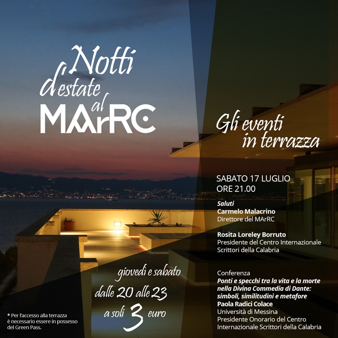 Reggio Calabria. Per le “Notti d’Estate” al museo Archeologico nazionale ancora Dante protagonista con Paola Radici Colace su “Ponti e specchi tra la vita e la morte nella Divina Commedia”. Accesso alla terrazza con il Green Pass