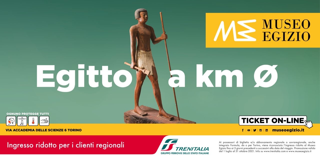 Egitto a km Ø: quest’estate chi raggiunge il museo Egizio di Torino con i treni regionali può approfittare di speciali tariffe grazie a un accordo con Trenitalia. Oltre all’ingresso ridotto sul biglietto singolo (12 euro anziché 15 euro), è possibile ricevere lo sconto anche sul Family Ticket (2 adulti e 2 minori 28 euro anziché 30 euro). È sufficiente essere in possesso di un biglietto o abbonamento regionale, sovraregionale o integrato Formula (per la riduzione sul Family Ticket almeno un membro della famiglia), valido da o per Torino, anche nei tre giorni precedenti o successivi alla data del viaggio. Il titolo di viaggio va conservato durante la visita del Museo. La promozione è valida fino al 31 ottobre 2021. Per raggiungere il Museo con i regionali veloci sono a disposizione collegamenti quotidiani con Milano, Genova, Cuneo, Savona, oltre ai regionali tra Torino e Aosta. Con oltre 300 treni del servizio ferroviario metropolitano (SFM), la città della Mole è connessa con tutta la Regione: Pinerolo e Chivasso, Alba ed Asti, Fossano, Rivarolo, Chieri, Susa e Bardonecchia. Per maggiori informazioni su orari e prezzi: www.trenitalia.com. Resta comunque valido l’obbligo di prenotazione online dei biglietti d’ingresso al Museo. Per maggiori informazioni e aggiornamenti sulle modalità di ingresso consultare il sito www.museoegizio.it.