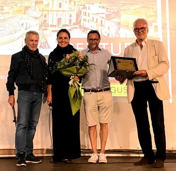 Piero Pruneti, Giulia Pruneti, Salvatore La Spina e Antonio Natali alla consegna del Premio Augusto del Centuripe Archeofilm 2021 (foto Archeologia Viva)