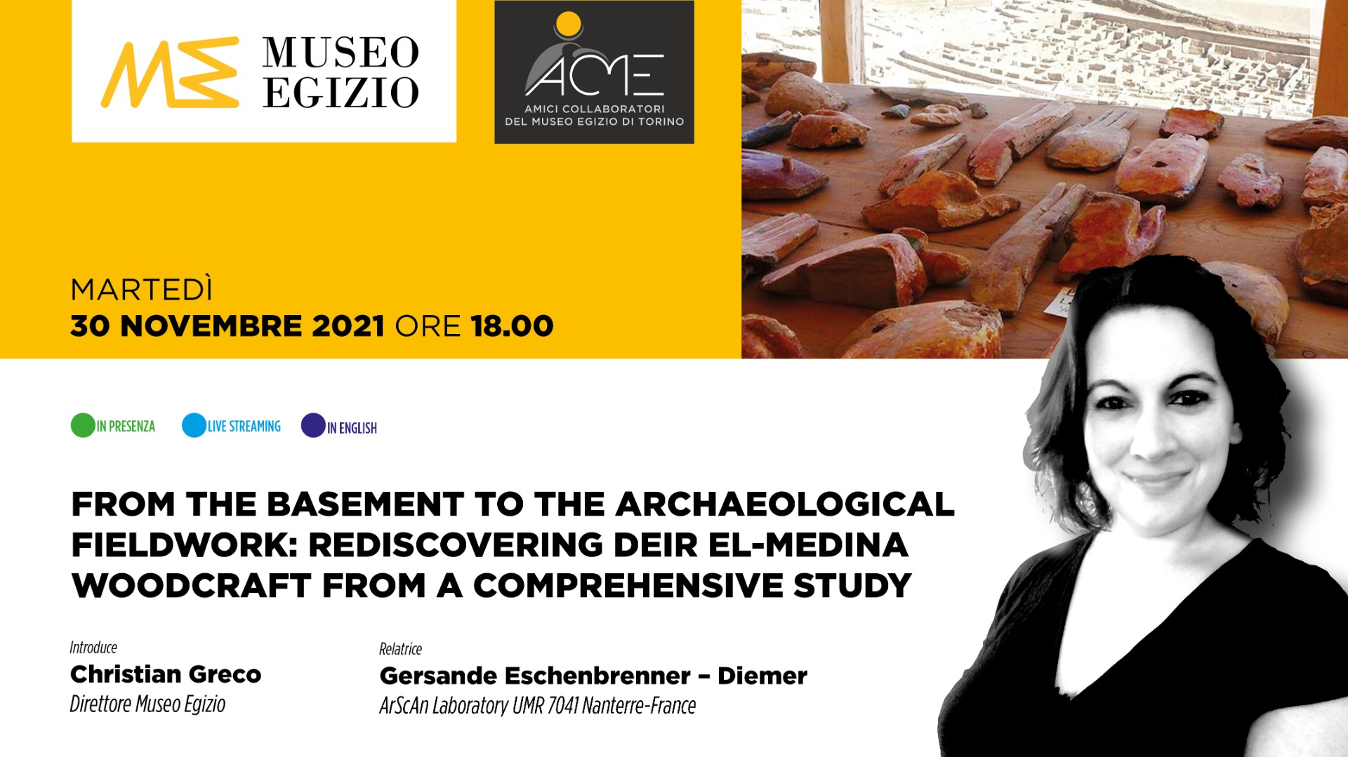 Torino. Al museo Egizio Gersande Eschenbrenner Diemer  su “From the basement to the archaeological fieldwork: rediscovering Deir el-Medina woodcraft from a comprehensive study”. Conferenza in inglese introdotta dal direttore Christian Greco, in presenza e on line in collaborazione con Acme