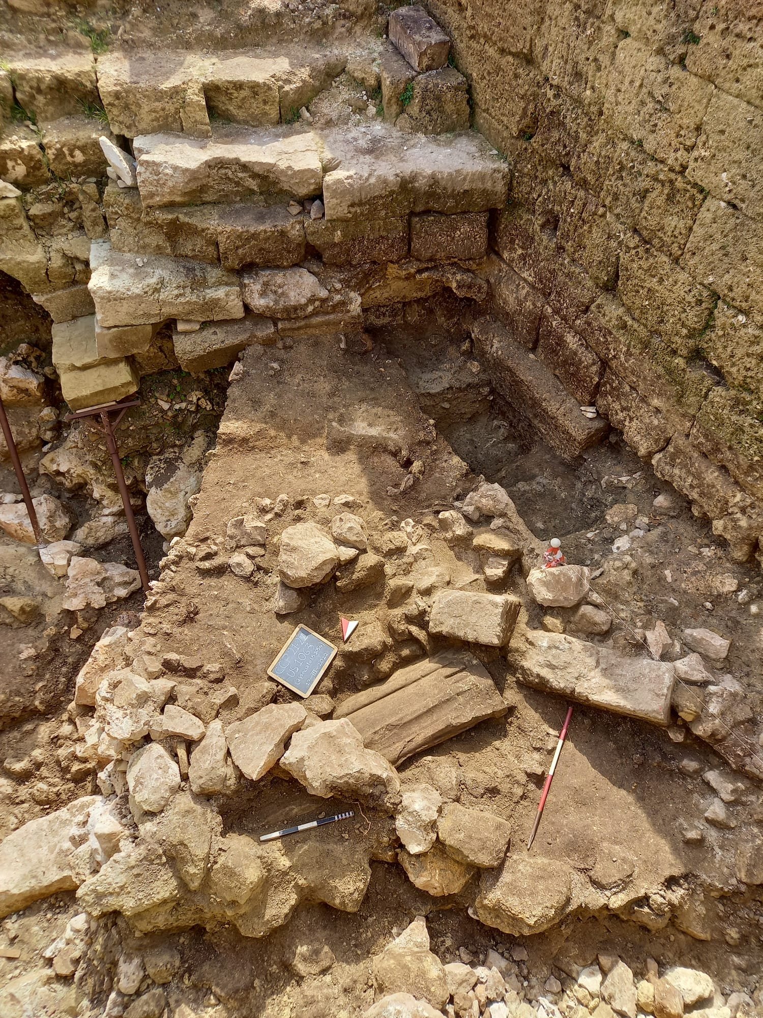 Castro (Lecce). Dagli scavi della colmata messapica emerge la parte inferiore di una statua collegabile al busto di una statua collegata al culto nel santuario di Atena. “Non si tratta di un semplice reimpiego, ma di una deposizione intenzionale, volta a occultare ritualmente i resti del luogo di culto”