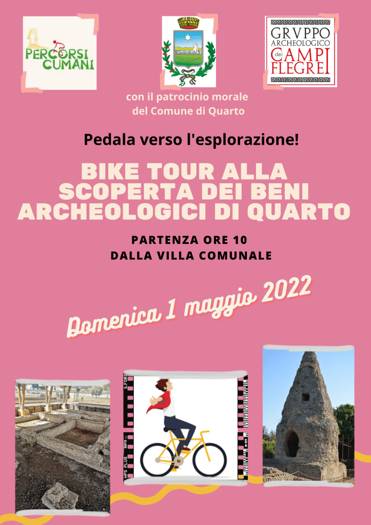 “Domenica 1° maggio 2022 non prendere appuntamenti, sistema la tua bicicletta e raggiungici in Villa comunale a Quarto alle 9.45 per una pedalata archeologica all’insegna della scoperta degli antichi monumenti di età romana”: è l’invito lanciato dalle associazioni Percorsi flegrei e Gruppo archeologico dei Campi flegrei che organizzano il bike tour archeologico con il patrocinio morale del Comune di Quarto. Evento senza scopo di lucro. Si parte dalla Villa comunale per raggiungere la villa romana del Torchio di via Masullo, dove si scopriranno gli aspetti del mondo agreste e delle ville rustiche che si trovavano nei campi agricoli di Puteoli. La villa rustica è stata portata alla luce nel 2006 e è l’unica visitabile nei Campi Flegrei. Poi ci sposteremo lungo via Spinelli, che prende il nome dall’omonima masseria, e arrivati in via Brindisi si visiteranno il complesso della necropoli “Fescina” di I secolo d.C. Il mausoleo a cuspide piramidale, costruito in opera reticolata, è la struttura più antica. Essa si compone di un alto tamburo circolare sormontato da una guglia piramidale a pianta esagonale, esemplare architettonico unico in ambito flegreo. Gli scavi archeologici hanno restituito la testimonianza di sepolture ad inumazione e a incinerazione. Per maggiori informazioni contattare Dario 3337424869 o Raffaella 3888352036.