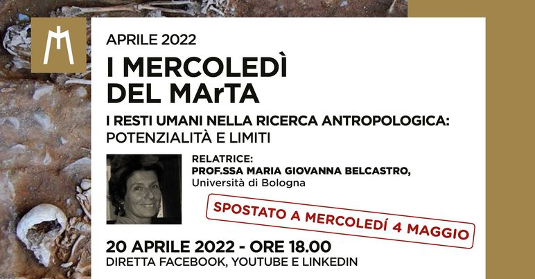 Sarebbe stato il terzo appuntamento di aprile dei “Mercoledì del MArTA”, dedicati ai “Racconti dall’oltretomba. Tra archeologia e antropologia dei resti umani”. “Grazie alla disponibilità della professoressa Maria Giovanna Belcastro dell’università di Bologna, recuperiamo uno dei tasselli chiave di questo racconto che ci consente di ripercorrere le tappe salienti dello studio delle vite degli uomini del passato”. La direttrice del museo Archeologico nazionale di Taranto, Eva Degl’Innocenti, annuncia così l’appuntamento del 4 maggio 2022 nell’ambito dei “Mercoledì del MArTA”: la conferenza della prof.ssa Maria Giovanna Belcastro su “I resti umani nella ricerca antropologica: potenzialità e limiti”, inizialmente prevista per lo scorso 20 aprile. L’appuntamento del 4 maggio è come sempre in diretta alle 18 sui canali YouTube, Facebook e Linkedln del museo Archeologico nazionale di Taranto. “È noto il valore dei resti umani per ricostruire la storia naturale dell’uomo, la sua nicchia ecologica e cioè le complesse interazioni che ha stabilito con l’ambiente”, spiega la prof.ssa Belcastro. “Tuttavia sono emergenti alcune criticità legate alla sostenibilità della ricerca antropologica e alla gestione dei resti umani in ambito scientifico e museale”. “Potenzialità e limiti”, afferma Eva Degl’Innocenti che introdurrà la relazione, “che consentono alla ricerca antropologica di leggere e interpretare il cambiamento sociale e culturale di ogni civiltà”.