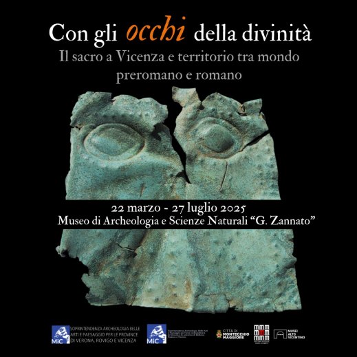Locandina della mostra “Con gli occhi della divinità: il sacro a Vicenza e territorio tra mondo preromano e romano” al museo Zannato di Montecchio Maggiore dal 22 marzo al 27 luglio 2025
