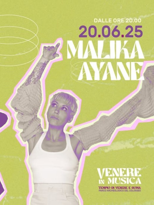 CONCERTO DEL 20 GIUGNO 2025. Protagonista della seconda serata di “Venere in Musica” 2025, venerdì 20 giugno 2025, sarà una delle voci femminili più amate dal pubblico italiano e internazionale, Malika Ayane. Reduce dallo straordinario successo del suo ultimo tour nei teatri, che ha registrato una lunga serie di sold out, per celebrare 15 anni di carriera, Malika Ayane arriva al Tempio di Venere e Roma con la sua sofisticata miscela di pop, soul, canzone d’autore e jazz. In equilibrio tra background classico, attitudine afroamericana, amore per la melodia e intensità emotiva, l’artista milanese ripercorrerà il suo vasto repertorio segnato da grandi successi, fino ad arrivare all’ultimo singolo uscito nel 2025, L’avresti detto mai, uno struggente brano composto per la colonna sonora del film di Guido Chiesa 30 notti con il mio ex.