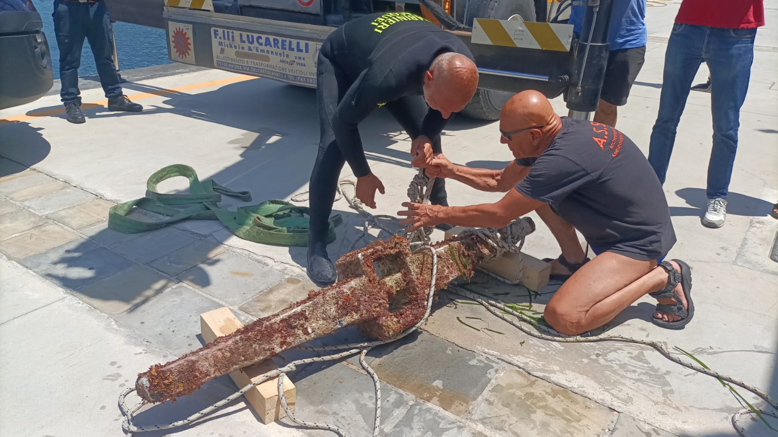 I subacquei – come si diceva – hanno riportato alla luce un ceppo d’ancora in piombo del peso stimato di circa 500 chilogrammi. Il reperto, probabilmente di epoca romana, è stato individuato e recuperato nelle acque antistanti “Torre La Punta”, area che il Comune di Pollica intende trasformare in zona marina protetta. Il ceppo è stato trasportato al porto di Acciaroli e sollevato con una gru messa a disposizione dalla Nautica La Greca. Attualmente si trova custodito in un locale comunale per i successivi accertamenti. Alle operazioni ha assistito il sindaco di Pollica, Stefano Pisani, che ha commentato: “Questo recupero dimostra come anche l’archeologia subacquea possa diventare una grande risorsa per il territorio. Il Cilento si conferma custode di un patrimonio storico e culturale straordinario”. Nel pomeriggio, le attività di immersione sono proseguite con il ritrovamento di un secondo ceppo d’ancora, di dimensioni minori ma dotato di contromarra, elemento strutturale funzionale all’ancoraggio. Insieme al ceppo, è stata recuperata anche un’anfora romana, probabilmente utilizzata per il trasporto di vino. L’anfora, in ottimo stato di conservazione, rappresenta un ulteriore indizio della vitalità commerciale e marittima di questa fascia costiera in epoca antica.