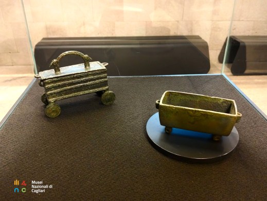 Carretti-cofanetti in bronzo a quattro ruote di età nuragica conservati al museo Archeologico di Cagliari (foto drmn-sardegna)