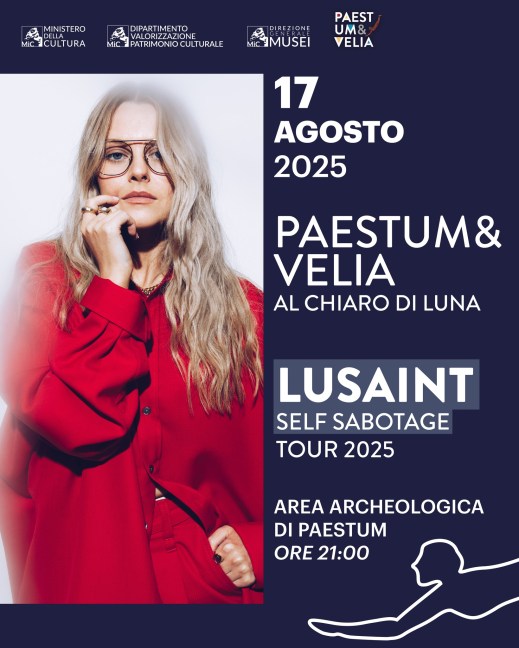 Per “Paestum&Velia al chiaro di luna” domenica 17 agosto 2025, alle 21, nell’area archeologica di Paestum la voce magnetica di Lusaint, protagonista del suo “Self Sabotage Tour 2025” – Musica & Parole 2025. Un live tra soul, jazz e venature pop, capace di incantare con atmosfere intime e sofisticate. Un’occasione imperdibile per ascoltare dal vivo una delle voci più promettenti del panorama internazionale, in uno scenario senza tempo. Apertura straordinaria dell’area archeologica di Paestum (area del Santuario Meridionale) ultimo ingresso 23.15. I concerti sono inclusi nel biglietto serale d’ingresso ai Parchi (15 euro) e nell’abbonamento “Paestum & Velia”. Servizio navetta gratuito. Partenza alle 19 dal parcheggio dell’area archeologica di Velia. Rientro da Paestum alle 23.30.