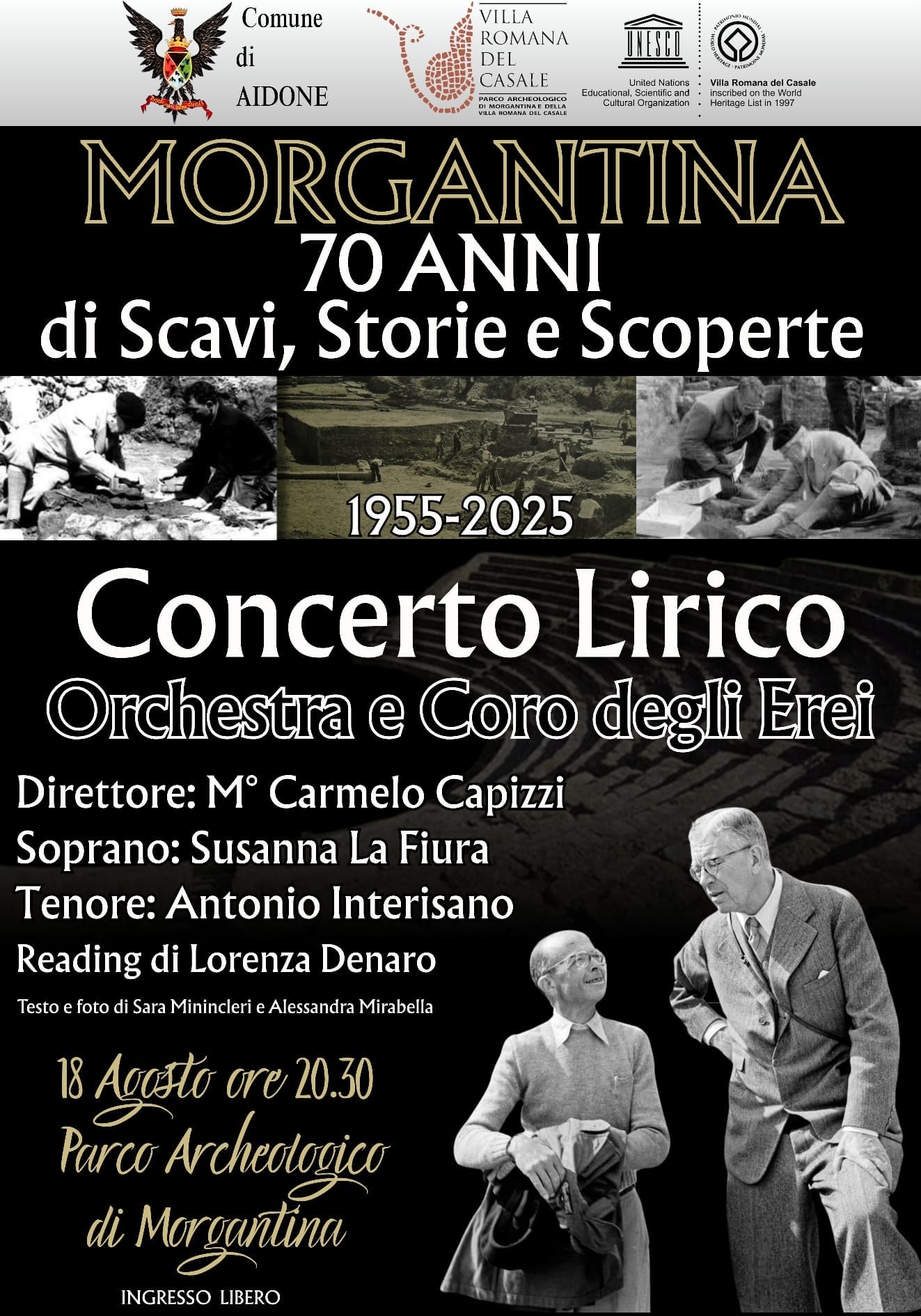 Aidone (En). Al parco archeologico di Morgantina a 70 anni esatti dall’inizio degli scavi “Morgantina, 70 anni di scavi, storie e scoperte. 1955-2025”: concerto lirico, reading di Lorenza Denaro, testo e foto di Sara Minicleri e Alessandra Mirabella